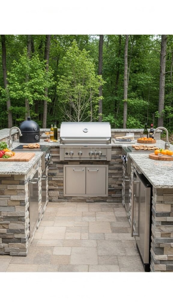 If your ready-to-assemble kitchen gave you the basics, a built-in grill island turns that setup into a destination: picture a stainless grill nested into a stone or tile-clad island with generous counter space on both sides for prep, plating, and serving.
