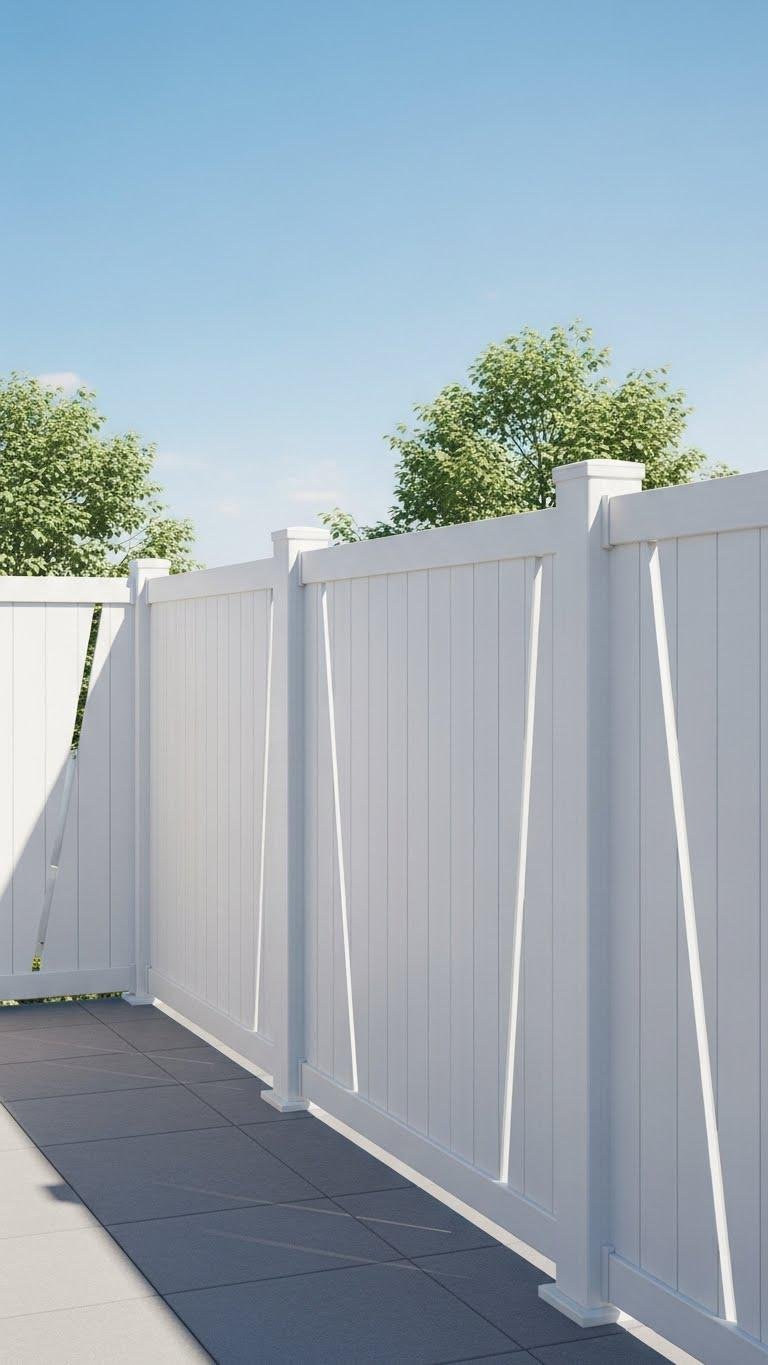 If you like the sculptural elegance of metal screens but want something low-maintenance and sleek, chic vinyl privacy fences offer a modern alternative that still reads as design-forward.