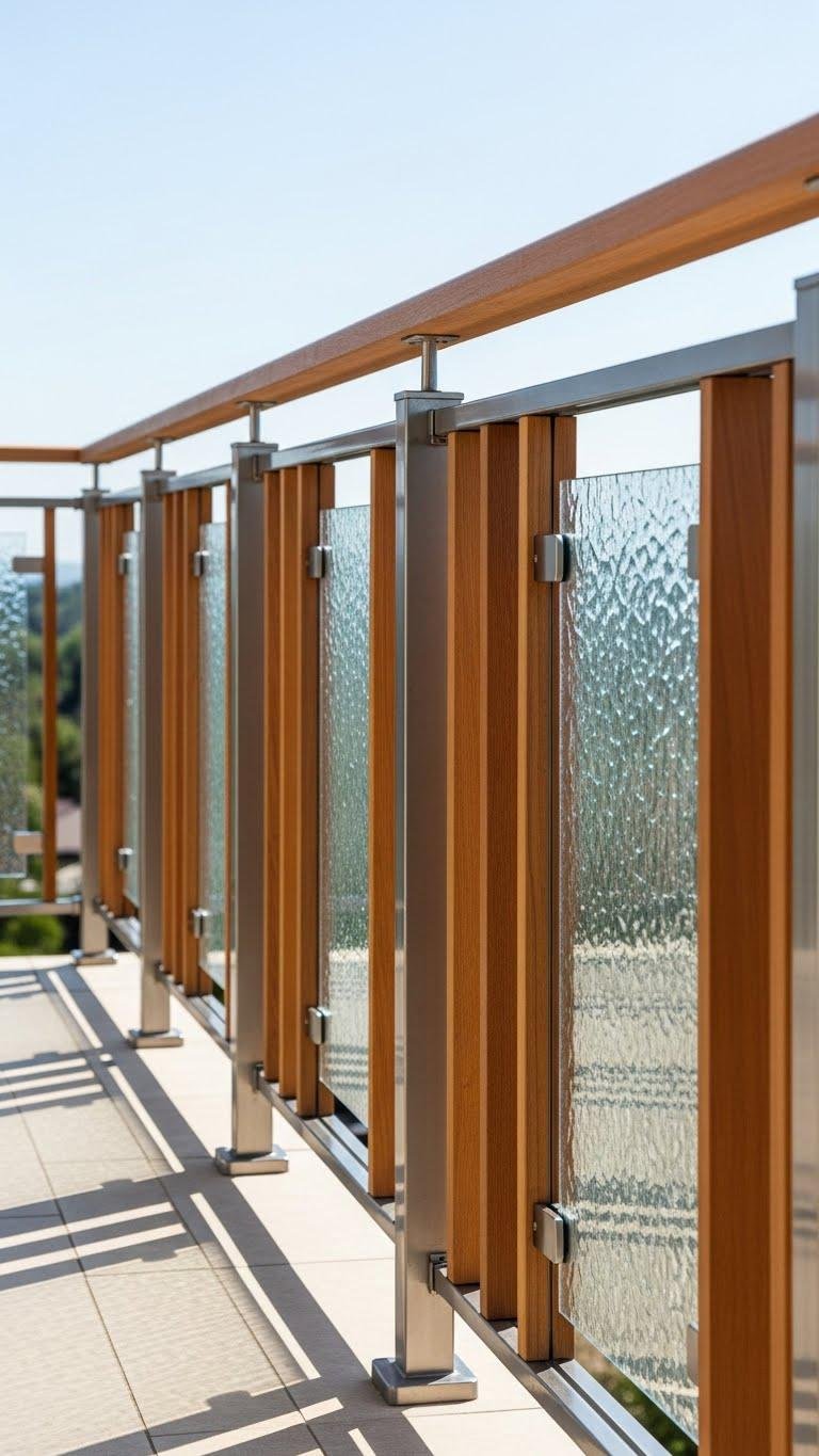 Blend metals, glass, and wood to create railings that read like curated jewelry for your balcony—each material contributes texture, temper, and tone. You’ll pair contrasting metals with warm wood, inset panels of textured glass for filtered views, and choose minimalist profiles to keep sightlines open.