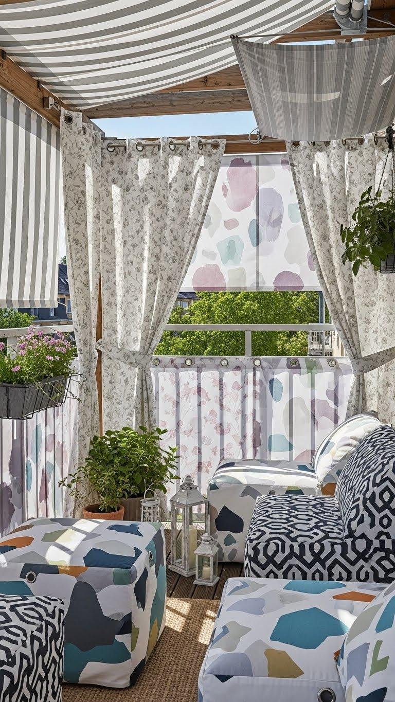 While drapes sculpt the balcony with soft, architectural folds, adjustable Roman shades offer a sleeker, geometric counterpoint that lets you dial light and sightlines with precision. You’ll choose linen, bamboo or performance fabric for tactile texture and controlled light filtering.