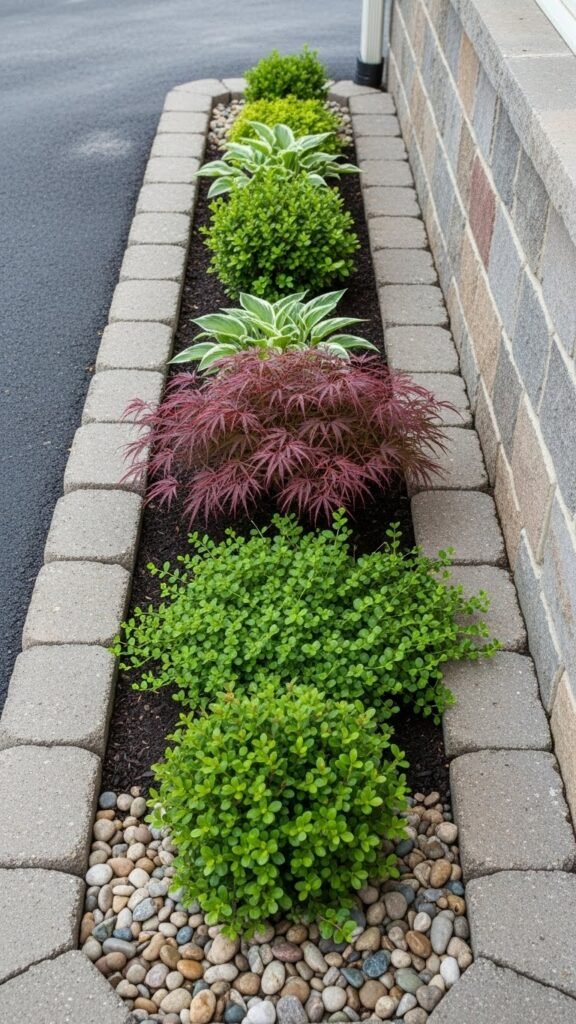 Frame your driveway corners with low shrubs that provide year-round structure without blocking sightlines; choose species under 3 feet tall like dwarf boxwood, spirea, or lavender and plant them in groups of three to five with 18–36 inch spacing so the masses read from the street. For shrubs selection, prioritize hardiness, form, and low maintenance. Use clean driveway edging and mulch for tidy, independent looks.