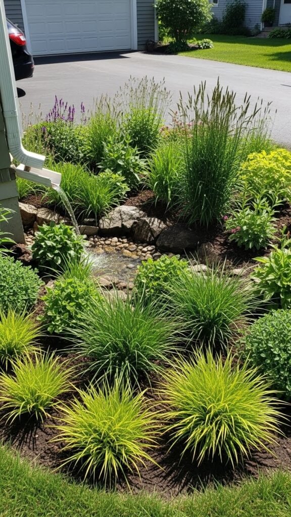When seasonal runoff pools near your driveway or downspout, design a rain garden bed that captures and soaks water while showcasing moisture-loving plants.