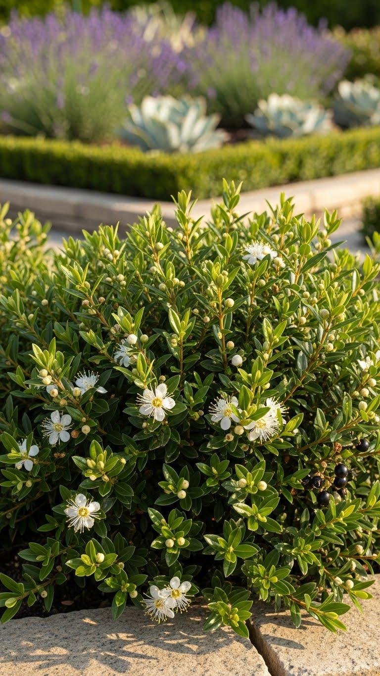 If you liked the fresh, herbaceous perfume of Peppermint Mountain Mint, Dwarf Myrtle (Myrtus communis ‘Compacta’) offers a different, resinous fragrance that works beautifully in tight spaces and formal edging.
