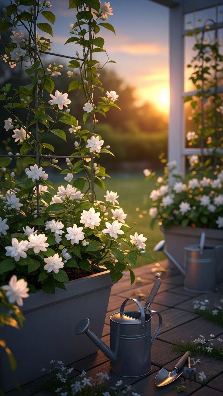 Often you’ll notice night‑blooming jasmine releasing its intense, heady perfume just as dusk falls, drawing moths and people alike to its glossy vines.