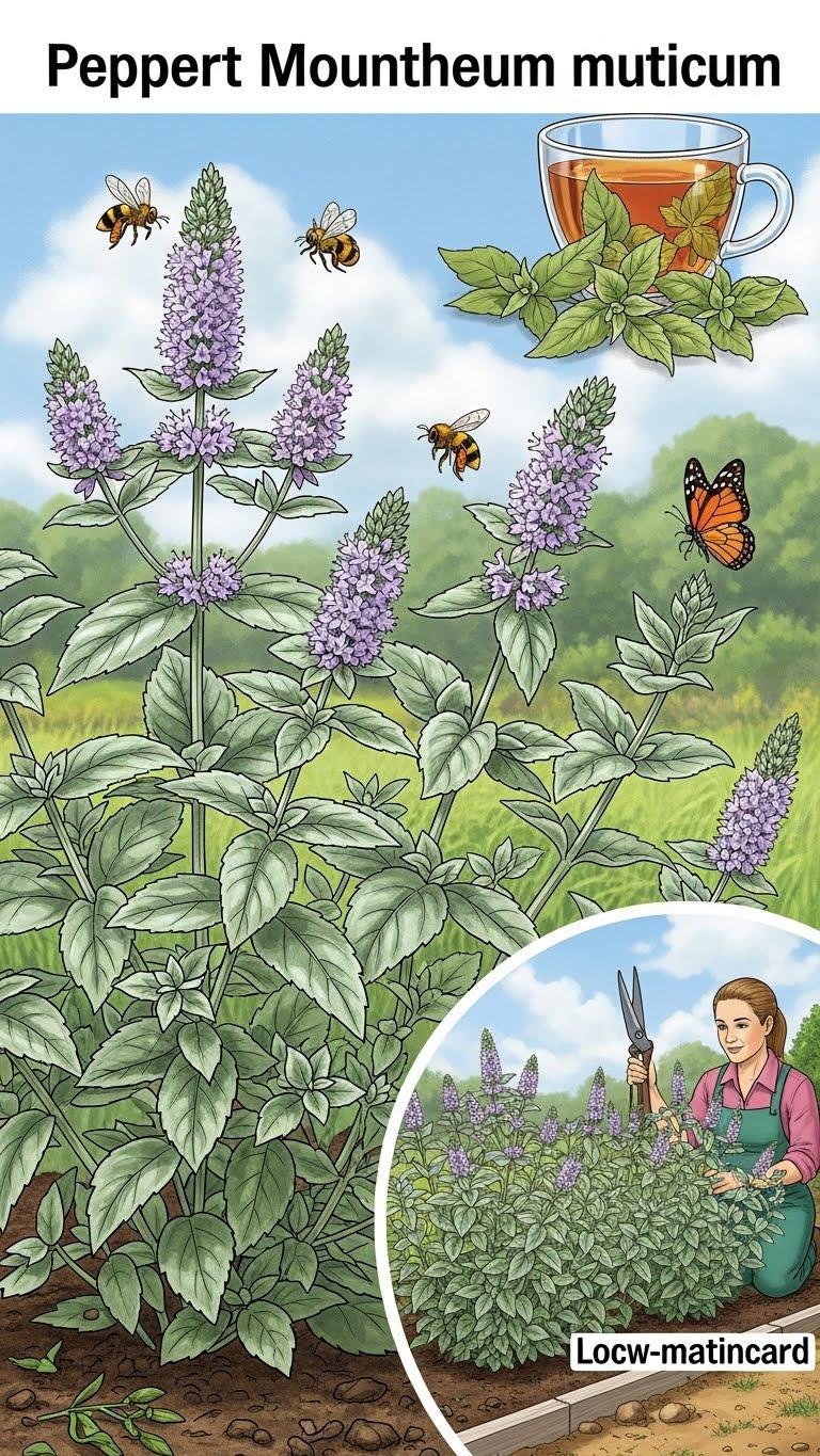 You’ll find Peppermint Mountain Mint (Pycnanthemum muticum) is a reliably fragrant, low-maintenance perennial that brings silvery-green foliage and tight, mint-scented flower clusters to sunny, well-drained beds and borders.