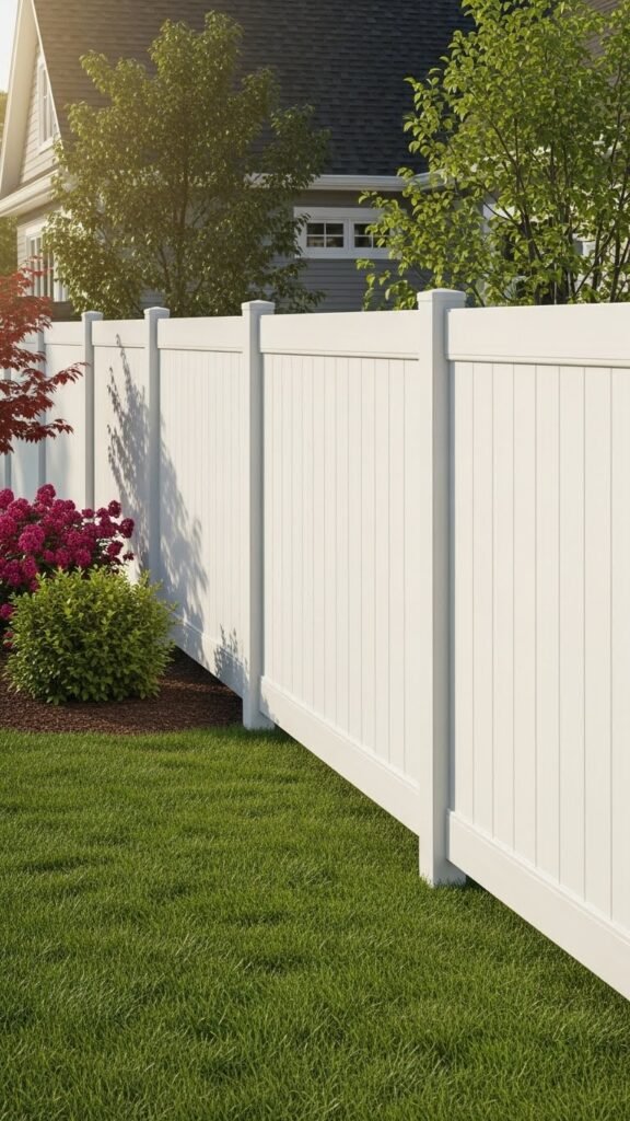 Often, you’ll find a white vinyl privacy fence with a metal frame delivers a crisp, low-maintenance barrier that stands up to weather and impact.