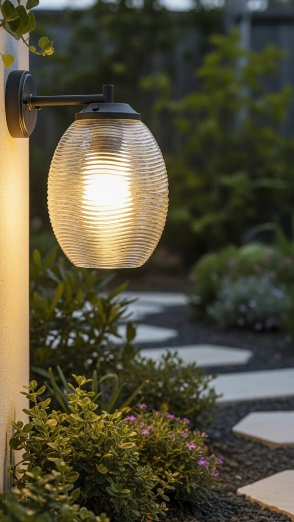 You’ll favor textured glass for directional diffusion; thickness and ripple pitch govern beam spread. The soft glow suits pathways or a garden centerpiece, adding coastal charm. Mounting, sealing, and corrosion-resistant fittings keep maintenance minimal so you can roam freely.