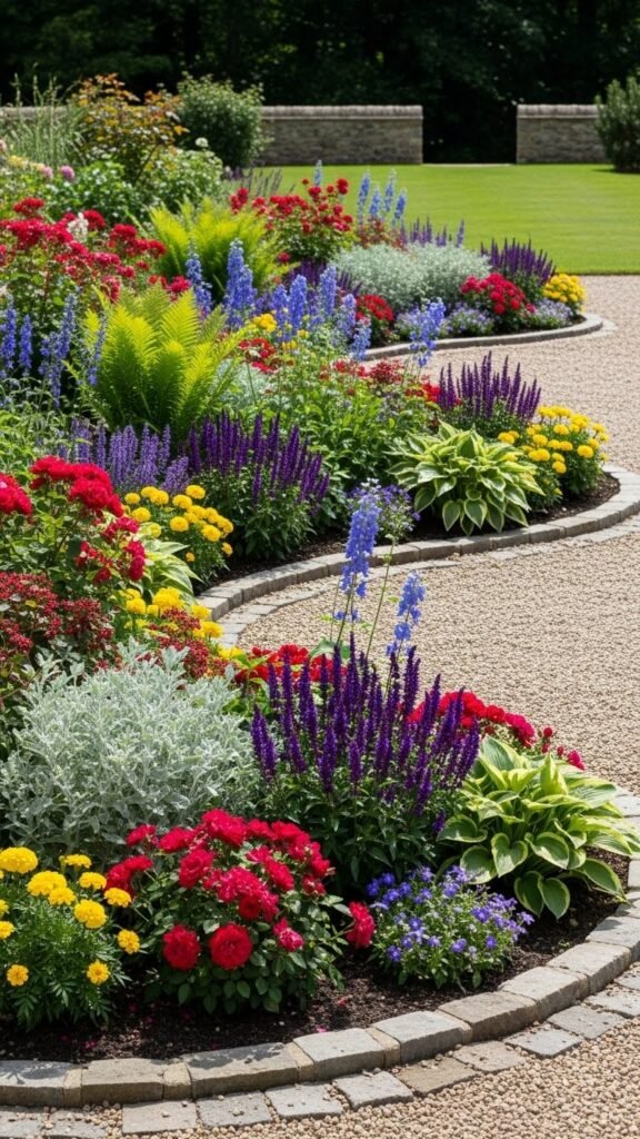 Often a serpentine border softens hard edges and draws the eye along a flowing edge, giving your garden a relaxed, natural rhythm while maximizing planting frontage.