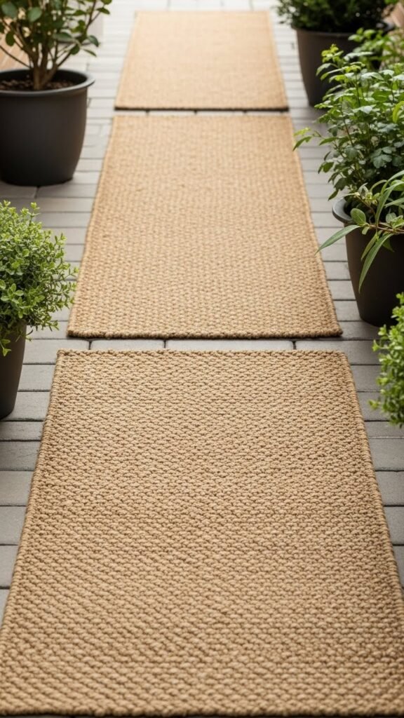 Embrace narrow layering with a low-profile runner in a durable fiber; the woven contrast anchors pots, guides movement, and complements foliage without crowding your outdoor freedom.