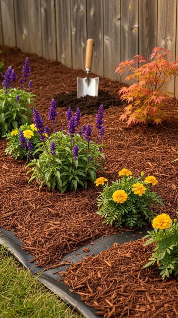 Do solid soil preparation first — loosen, amend, settle. Lay a breathable weed barrier where needed, then spread 2–4 inches of mulch. You’ll reduce chores, protect roots, and enjoy tidy, carefree beds that invite relaxation.