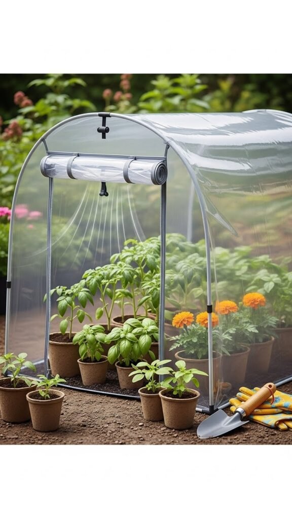 You’ll assemble a tidy mini hoophouse with a pvc microframe, tuck plants inside, and move it where light’s best.