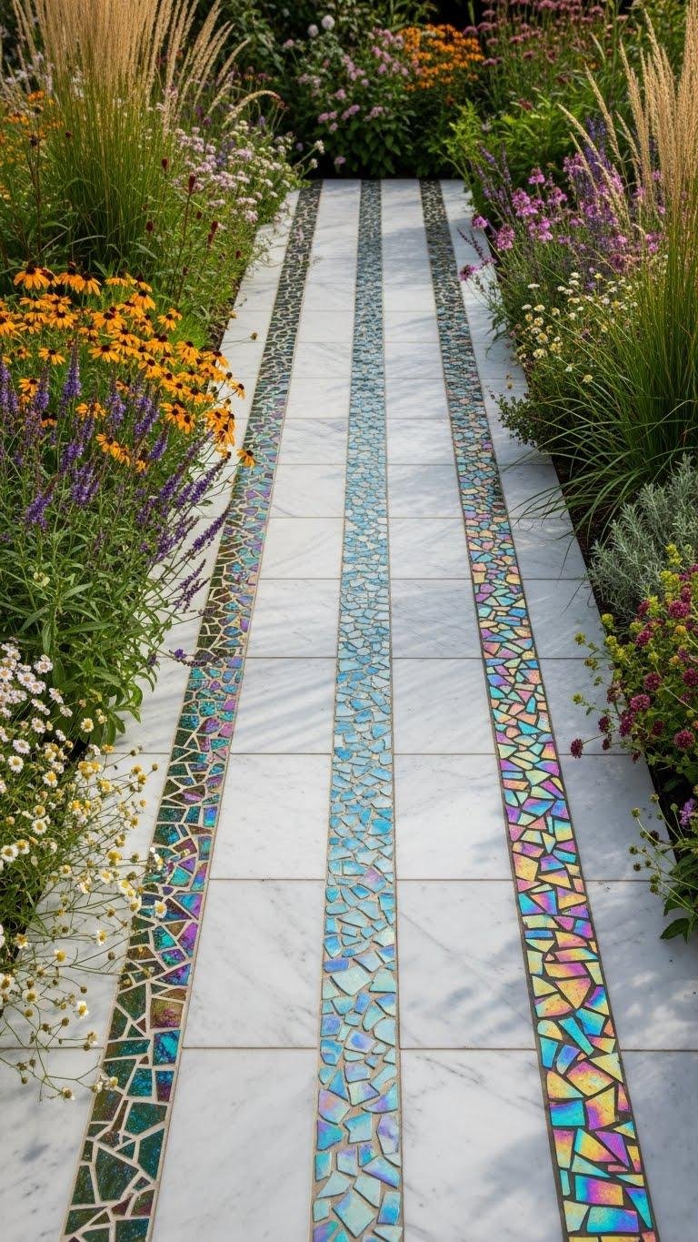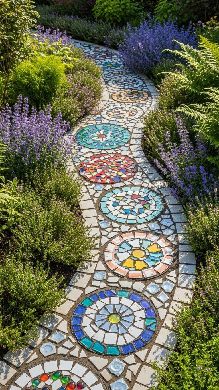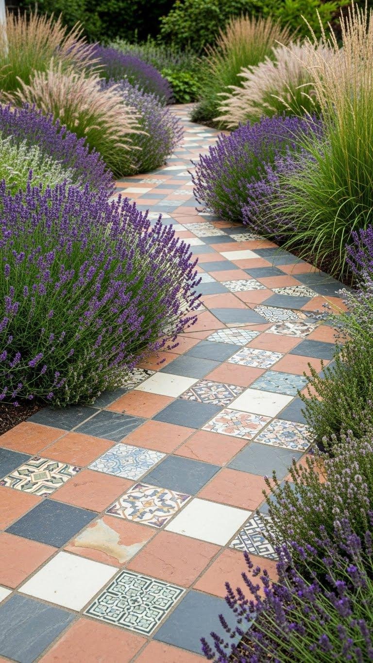 When you lay a mosaic pathway with patchwork field tiles, picture stepping stones stitched from sun-warmed terracotta, slate, and salvaged ceramic that guide visitors through beds of lavender, thyme, and ornamental grasses; the varied textures and colors create ribbons of contrast that echo the surrounding plantings and help define garden rooms.