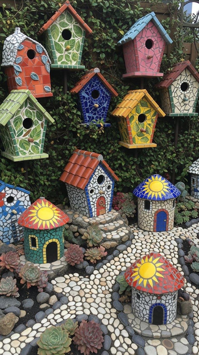 Mosaic Birdhouses and Small Structures