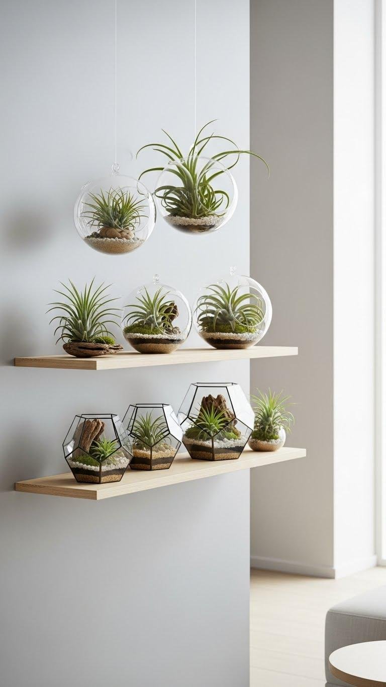 You’ll love the vertical mounting that frees surfaces, crisp glass vials cradling epiphytes, and a refined hanging display that feels effortless.