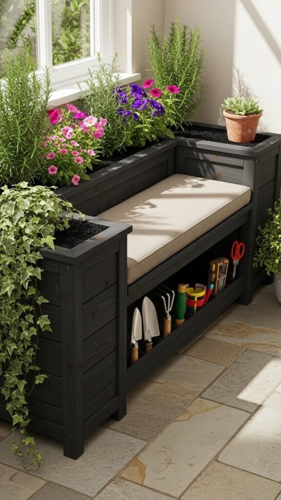 Bench-planter benches combine seating and growing space to make the most of tight patios or entryways, letting you sit, socialize, and tend plants without sacrificing square footage.