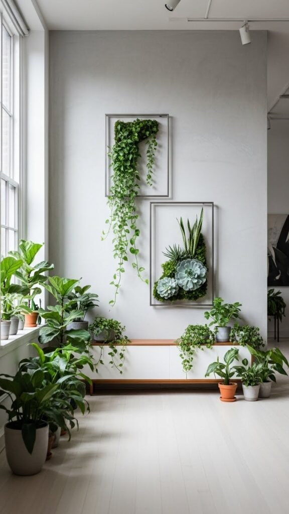 Choose layered succulents and airy trailing vines for contrast, vary pot textures, and leave negative space. This setup feels liberating, sculptural, and effortlessly modern, perfect for open, adventurous homes.