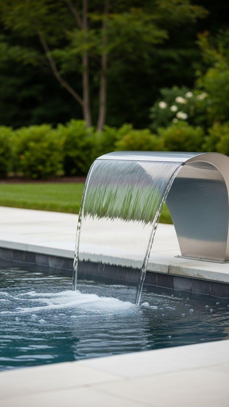 Cut a sleek sheet of water into your pool or pond with a water blade—an architectural spillway that pours a flat, mirror-like curtain from a stainless-steel lip or recessed trough.